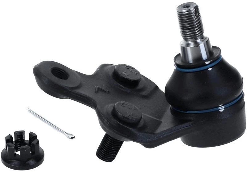 A ball joint is a critical component of the suspension system that connects the control arm to the steering knuckle. It functions like a pivot point, allowing the front wheels to move up and down with the suspension while also turning left and right for steering. This ensures smooth handling, steering precision, and proper alignment.