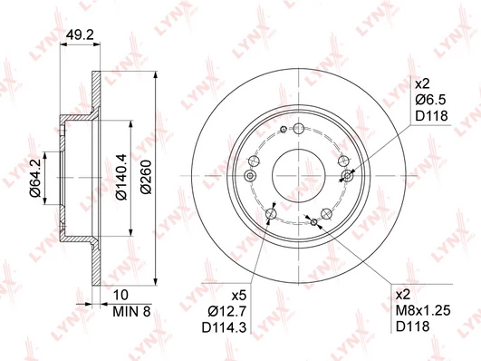 Disc dimensions (diameter, thickness, height, center bore)